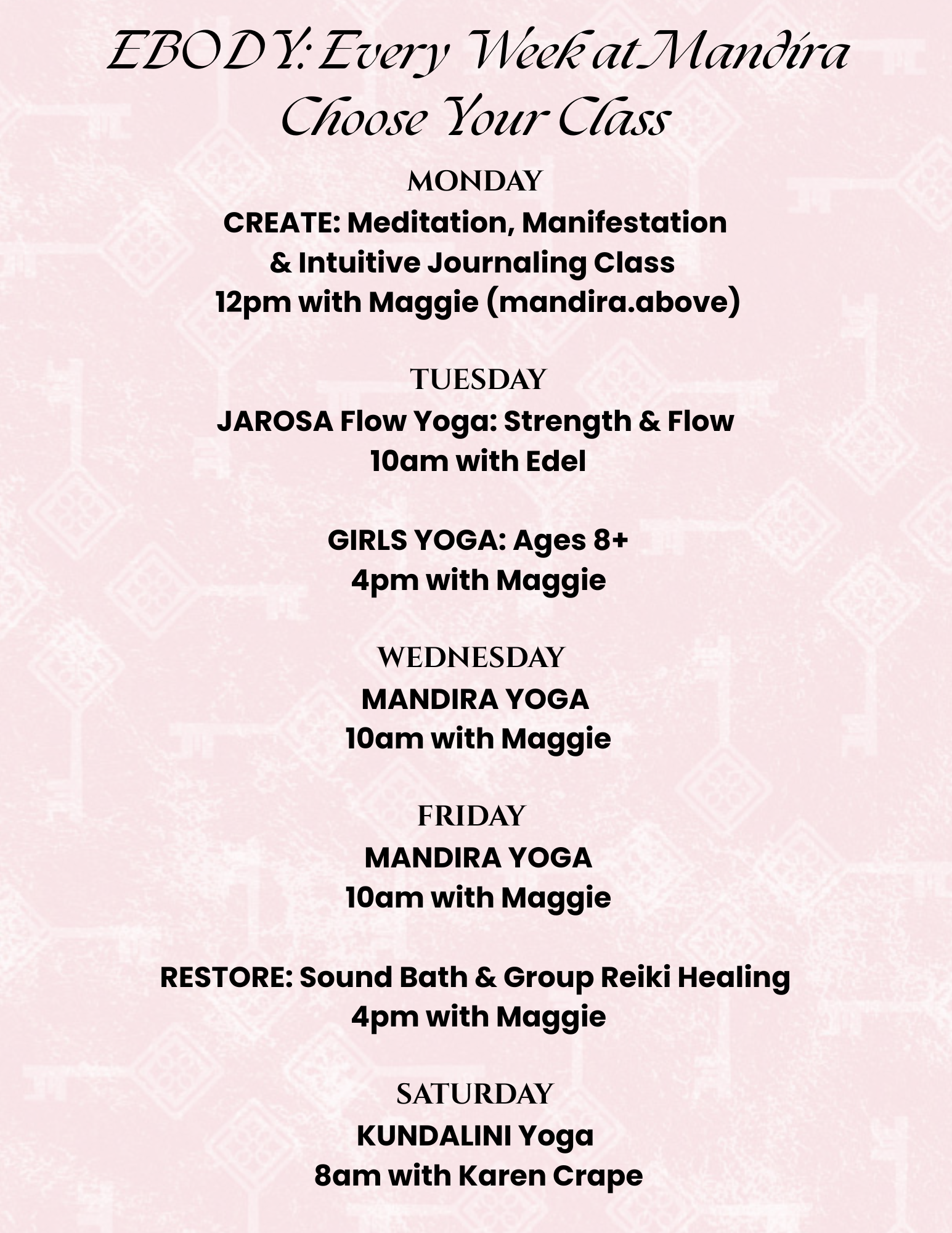 Mandira offers you your own space to embody in ways that resonate the most for you. You can regulate, reset, and return to yourself with regular support for the body and nervous system through consistent practice. Your intention and your goals are yours, we are here to hold and guide in this space for you.